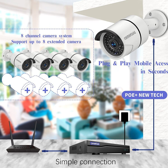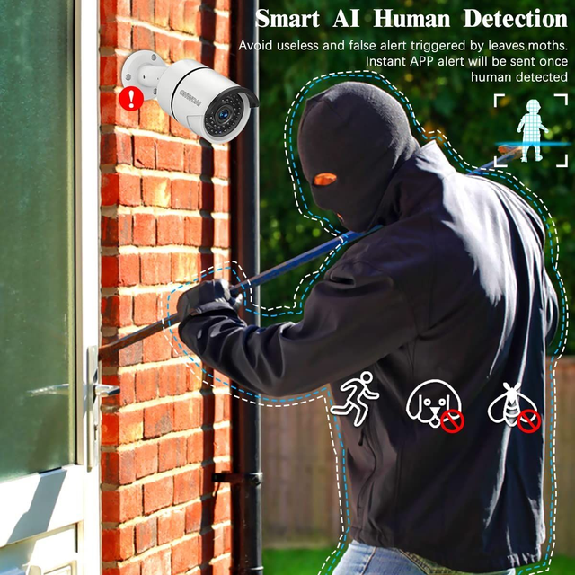 [AI Human Detection] With most advanced AI Human Detection technology,OHWOAI poe security camera only detects human movement.It's more accurate than PIR or motion detection camera,avoiding 99% false alerts.System supports motion detected record & alarm and allows you to access it remotely from your phone,tablet or PC.When movement is detected,the system will send you email alert so you can see what's happening.
