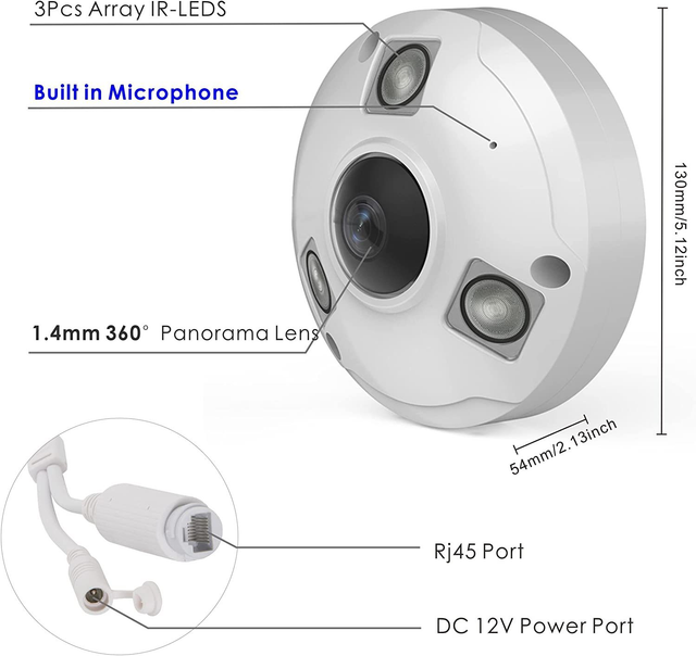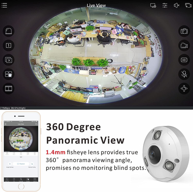 【H.265 Super HD 5MP】The 5Megapixel (2592 x 1944) Super-high-definition security panorama camera provides you a wide viewing angle high resolution image.