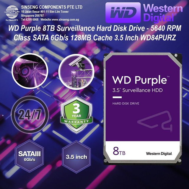 Disque dur Western Digital Purple spécial vidéosurveillance 3,5" Serial ATA 6Gb/s (SATA 3) (2 To - 4 To - 8To)