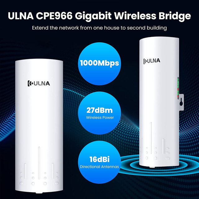High Speed: This outdoor point to point wireless bridge has one Gigabit RJ45 port and a 100Mbps RJ45 port. The transmission speed between the two wifi bridges outdoor is up to 1200Mbps. Through the Gigabit RJ45 port, the maximum wired network speed will be 1000Mbps, Which can better meet your internet speed needs
