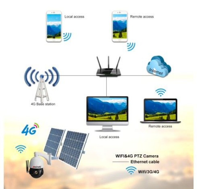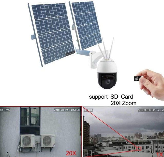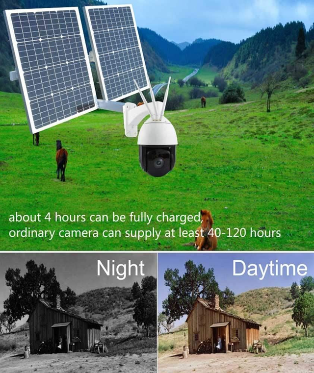 [Solar Panel Supply & 100% Wireless Security Camera] --- Solar security camera with built-in rechargeable batteries guarantee the wireless camera eternal power. No worry to take off the camera to charge. Insert a sim card in the security camera, and download an APP on the mobiel , then you can monitor anytime anywhere