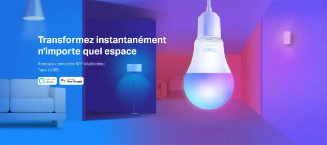 Ampoule LED Connectée Tapo L530E (2-PACK), LED E27 Multicolore 2500K-6500K 8.7W 806Lm, compatible avec Alexa, Google Home, application Tapo,