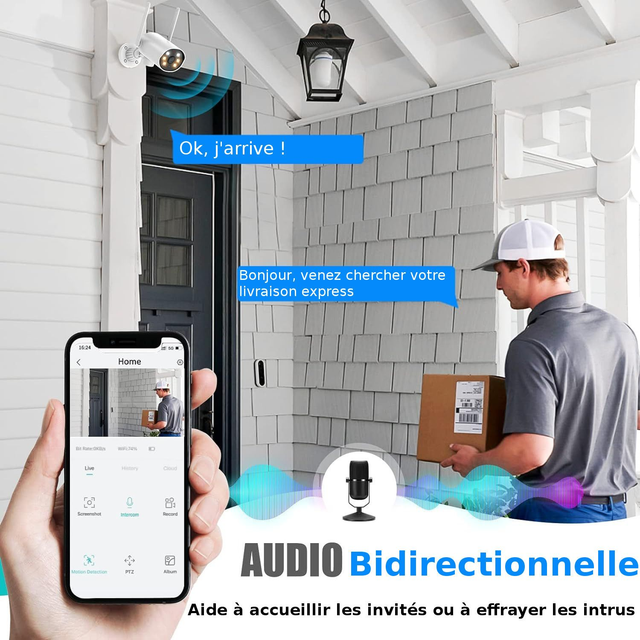 - Audio bidirectionnel permettant d'entendre et de parler à une personne se trouvant à proximité de la caméra